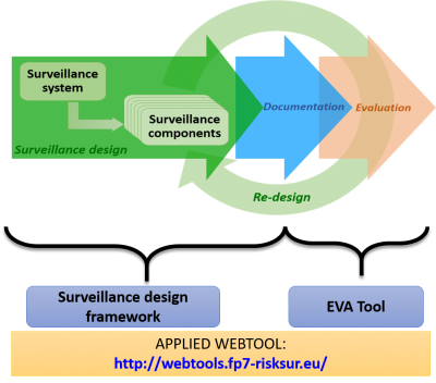 The output of the process is a surveillance design informed by current epidemiological knowledge and tools as well as full documentation of the design and decisions made. Moreover, the framework is linked to the RISKSUR tool for evaluation of surveillance components (EVA tool). Together, the two frameworks promote a structured and systematic approach for surveillance design and evaluation, promoting comparable, transparent and cost-effective surveillance.